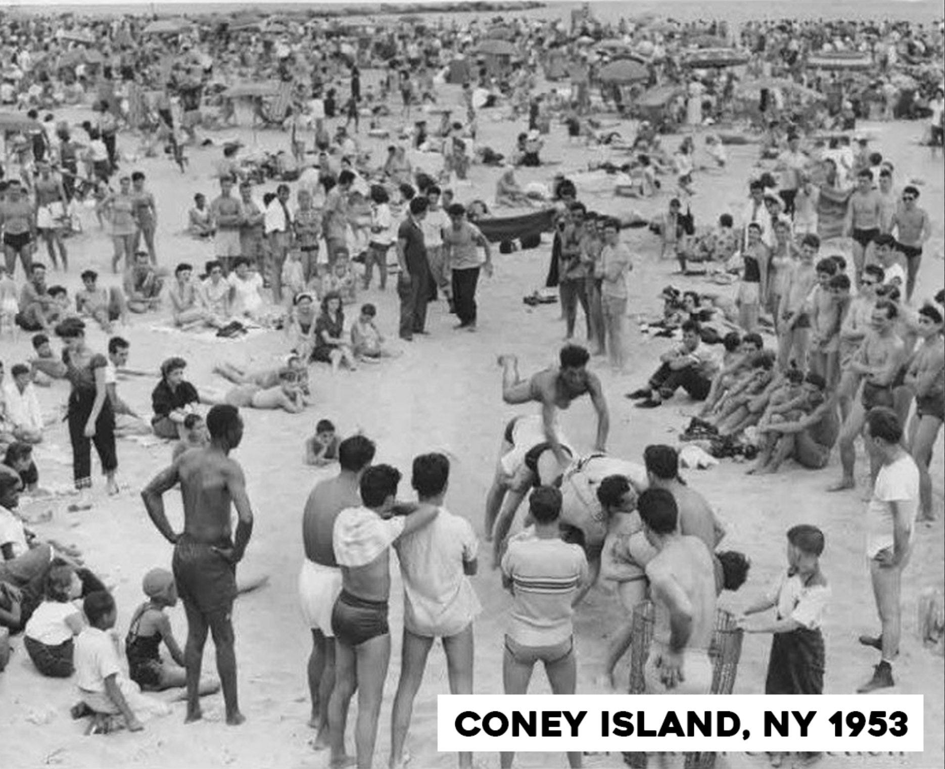 Let’s look at an old “crowd shot” from a few decades ago. What do you notice right away? Overweight people are largely absent.