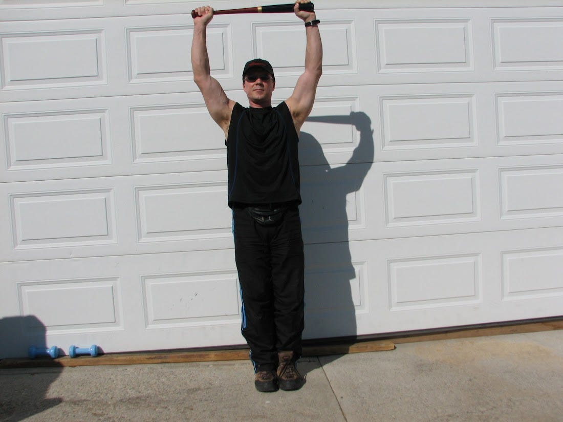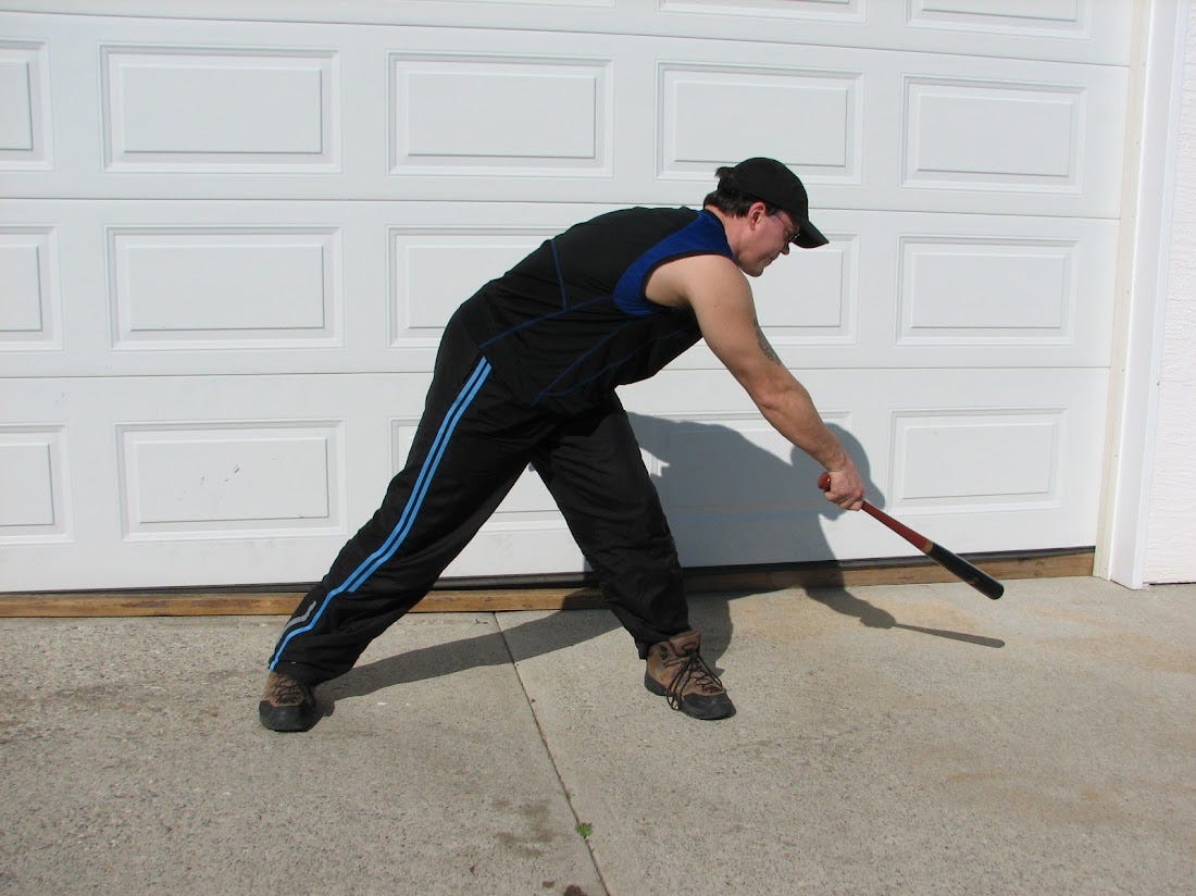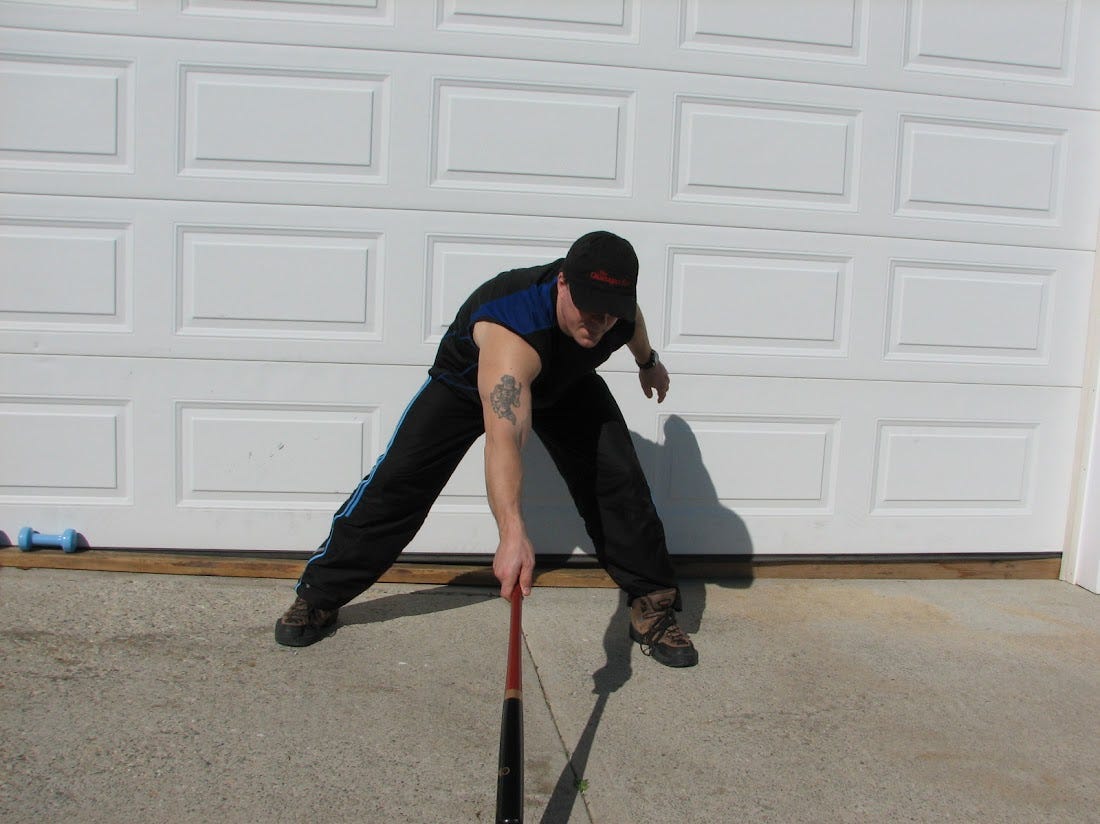 This exercise involves swinging a small (kids) bat across the front of the body in a wide arc using one hand. The bat starts low on one side, moving across the body and ending high on the opposite side. You’ll target the obliques, lower back and improve overall core strength. Make sure to tighten the core as you move through the exercise.