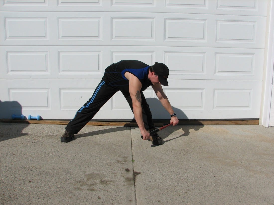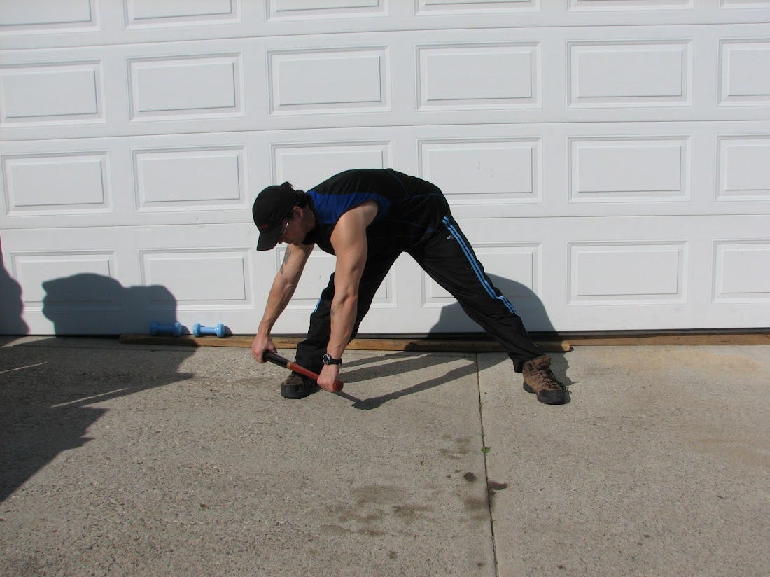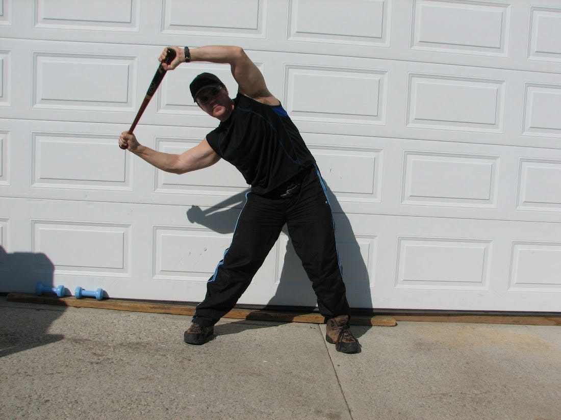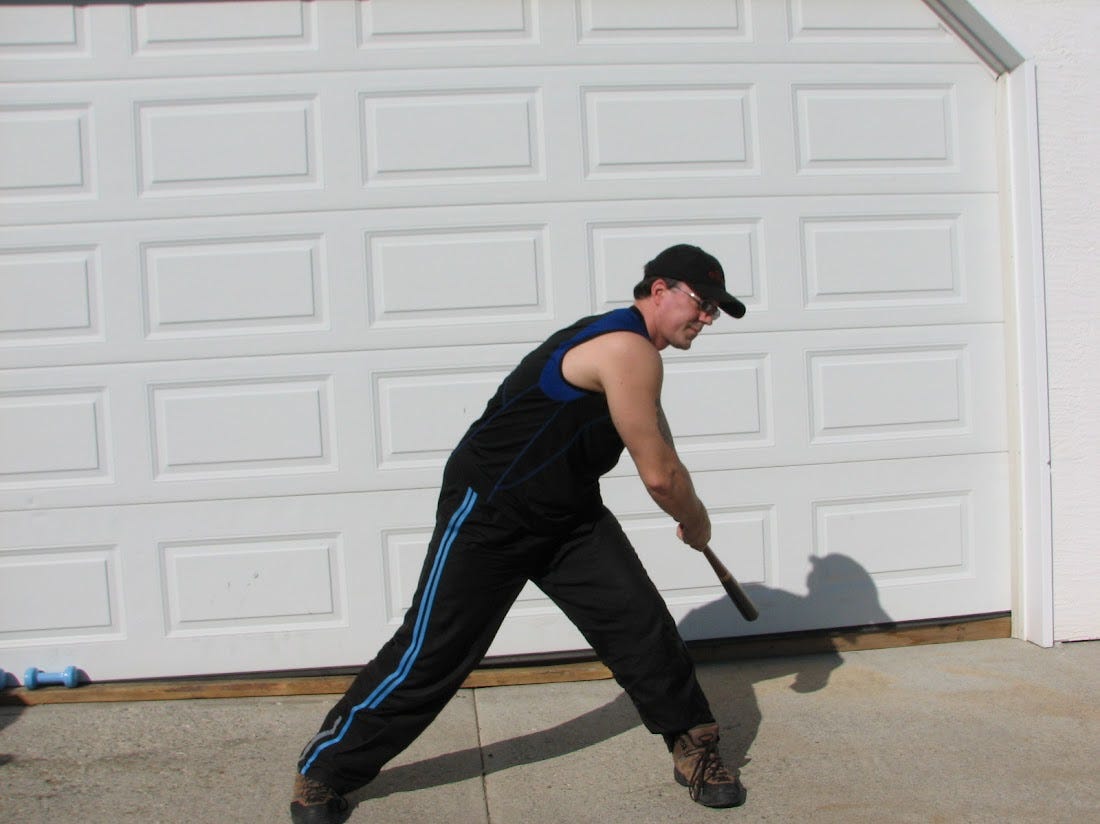 This exercise involves swinging a small (kids) bat across the front of the body in a wide arc using one hand. The bat starts low on one side, moving across the body and ending high on the opposite side. You’ll target the obliques, lower back and improve overall core strength. Make sure to tighten the core as you move through the exercise.