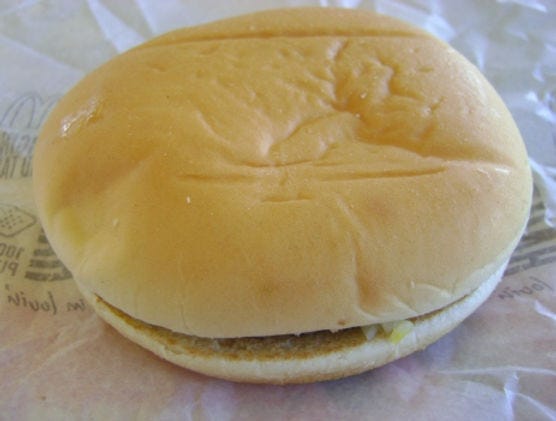 McDonald's white bun is a nutritional void, made from refined flour stripped of most of its fiber, iron, and B vitamins, and grown with pesticides and hormones, stored in insecticide-coated bins, and potentially fumigated.