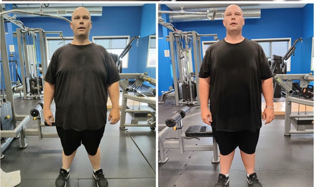This is a before and after picture of my client Jody Subotin. I’ve been granted permission to share his name, likeness, and story – a truly inspiring tale. While I've coached countless individuals to remarkable weight loss achievements, from 20 to 80 pounds, and even one woman who triumphed over 100 pounds twice, Jody's journey stands out. A decade ago, he shed 160 pounds in 18 months under my supervision.
